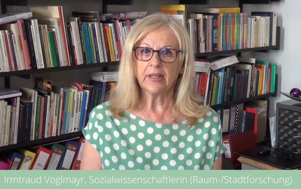 Irmtraud Voglmayr ist Medienwissenschafterin und Soziologin. Sie lehrt an den Universitäten Wien, Salzburg, Klagenfurt und Boku Wien und arbeitet zu Prekarität, Altern, Medien, Stadt und Raum. In diesem Video spricht sie über das Verhältnis von Stadt und Geschlecht sowie über Fragen zu öffentlichen/privaten Räumen und zu Sicherheit.